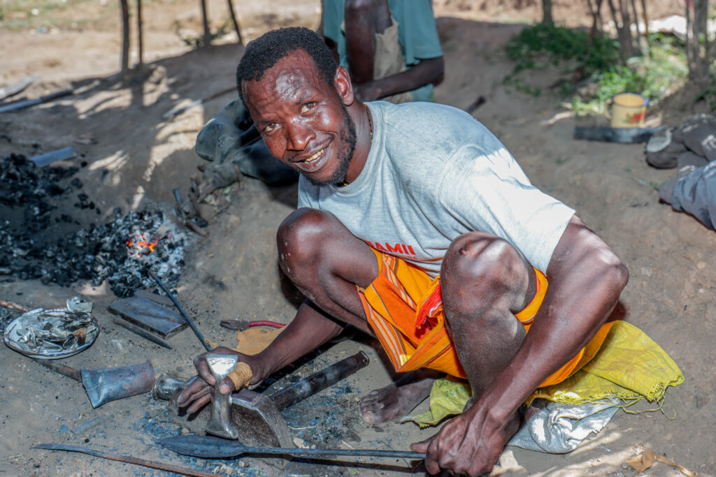 Francis recalls his early days in blacksmithing, a skill he learned from his father at the age of ten. “My job was to fan the fire as my father worked,” he shares. “I started by making bells for livestock, then small spears, and eventually moved to crafting full-sized spears.” This skill became his livelihood, but the challenges were many.